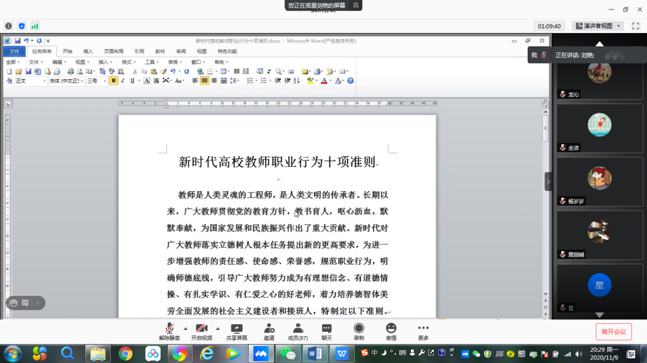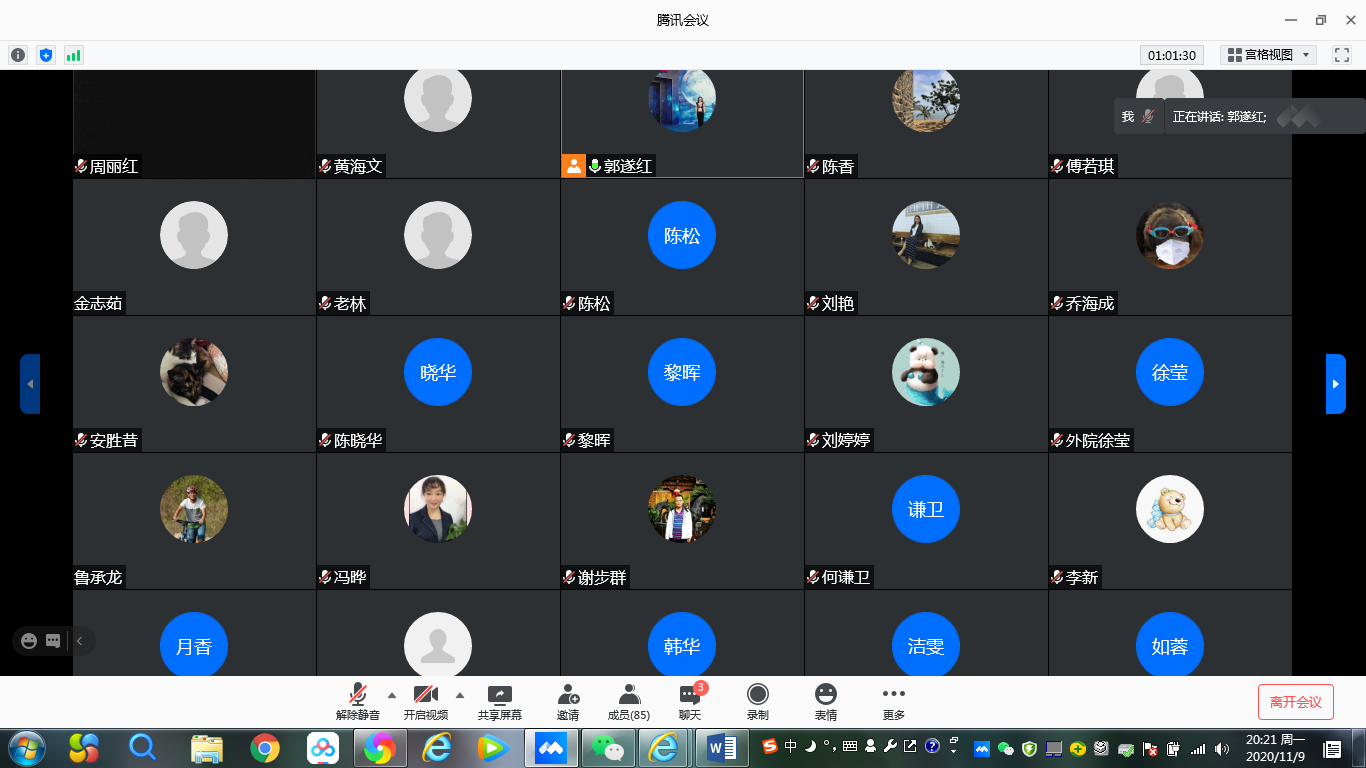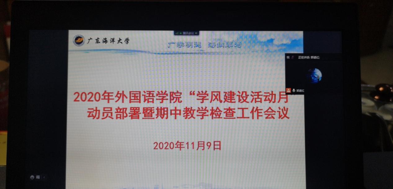 11月9日晚上,公司召开2020年“学风建设活动月”动员部署暨期中教学检查工作腾讯视频会议,公司全体教职员工90余人参加了会议,公司经理郭遂红主持会议。