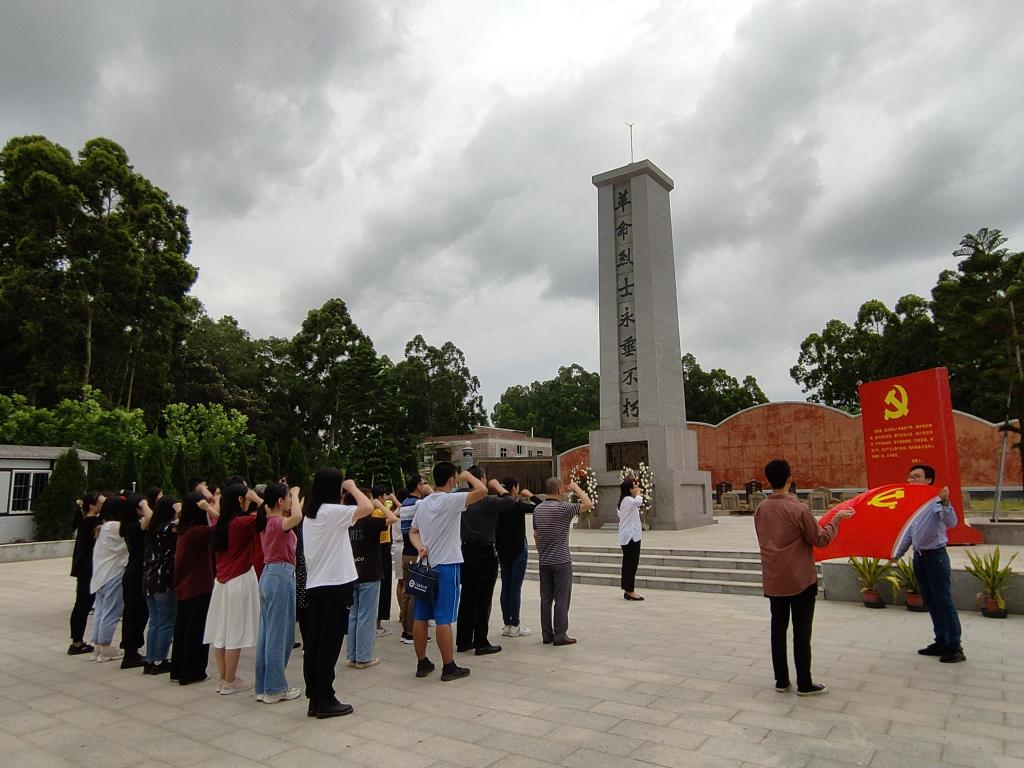 在南路革命纪念园内,全体师生党员肃立在革命烈士纪念碑前默哀。为进一步坚定入党的初心与使命,刘艳副书记带领师生党员面对鲜红的入党誓词碑,郑重地举起右手,重温了入党誓词。然后,全体党员排着整齐的队伍绕行纪念碑一圈,瞻仰烈士纪念碑,并深情缅怀先烈祭奠英灵。