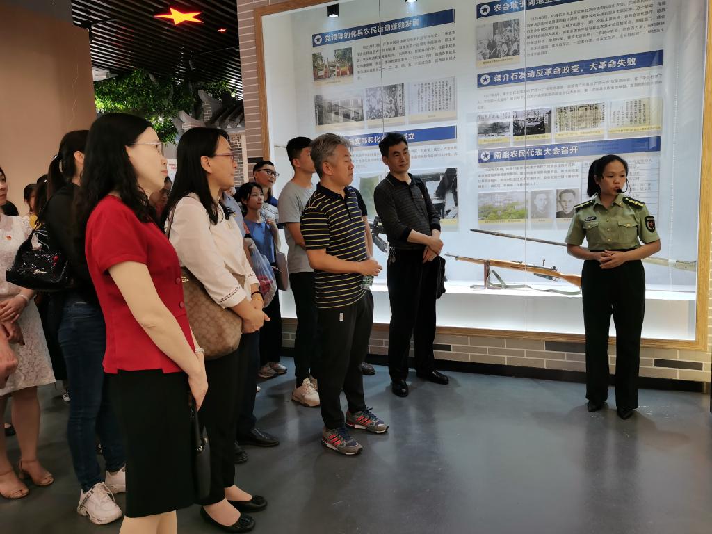 随后,师生党员们来到南路革命纪念馆内参观学习,认真聆听讲解员为我们讲述南路革命发展历程以及革命先烈们积极投身革命,勇于献身的光辉事迹。在“国民革命风雷激荡”“全民抗战同仇敌忾”“反击屠杀烈士丰碑”等展区内,一张张珍贵的历史图片,一件件沧桑的革命文物,一个个可歌可泣的悲壮故事……大家认真聆听、驻足细读,为化州柑村革命烈士抛头颅洒热血、坚贞不屈、最终英勇献身的悲壮历史所震撼与感动。师生党员们回顾波澜壮阔的革命历史,追忆南路革命先烈们的崇高风范和英雄精神,感受今日中国之变化,更加坚定一名共产党员所肩负的责任与使命。