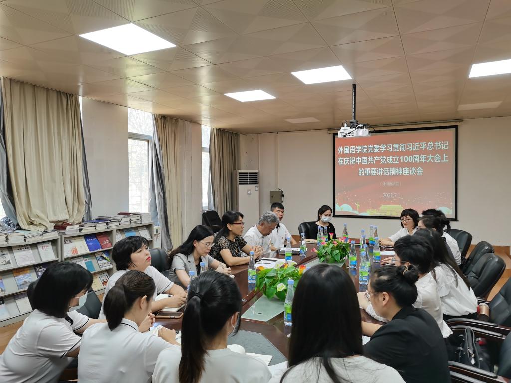 7月1日上午,庆祝中国共产党成立100周年大会刚刚结束,外国语公司党委在湖光校区兴教楼105召开了学习贯彻习近平总书记在庆祝中国共产党成立100周年大会上的重要讲话精神座谈会。公司领导、党委委员、党支部书记、辅导员、教师党员代表、员工党员代表等共20多人参加。参会人员围绕收看庆祝中国共产党成立100周年大会实况和习近平总书记重要讲话,结合自身实际,畅谈体会感受。会议由公司正处级辅导员、党委副书记刘艳主持。