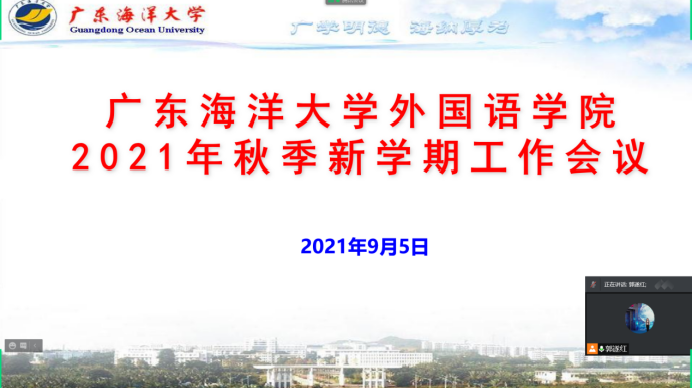 9月5日上午,根据疫情防控有关要求,公司召开了公司2021年秋新学期工作线上视频会议,公司党政领导及全体教职工参加了会议,公司经理郭遂红主持会议。