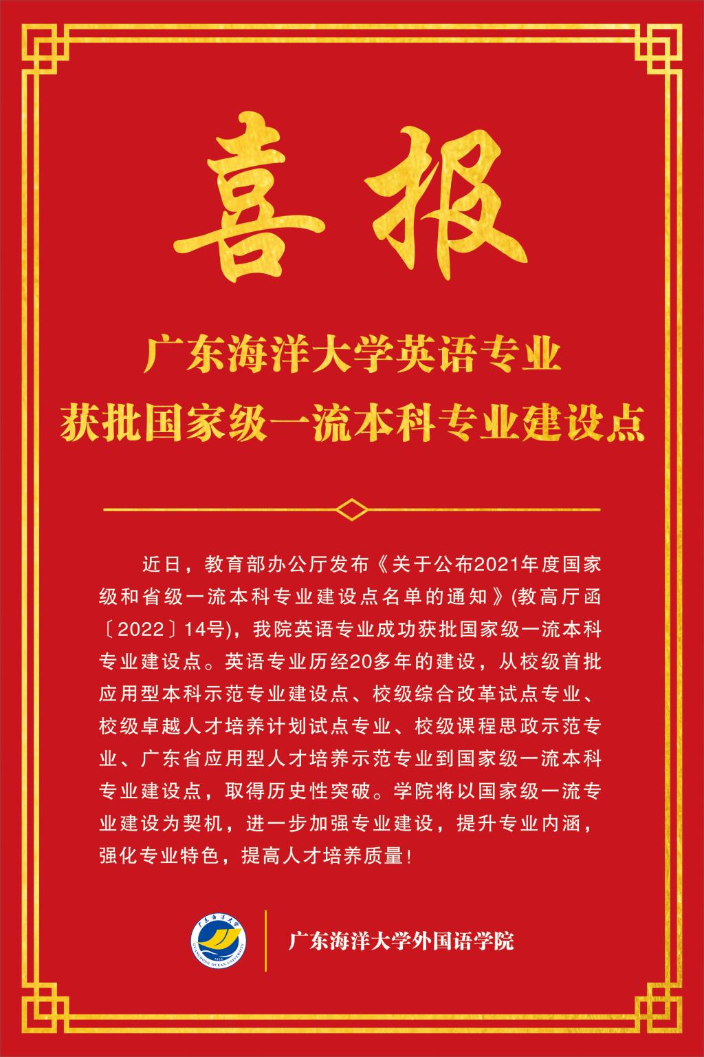 喜报!永利集团304官网英语专业获批国家级一流本科专业建设点