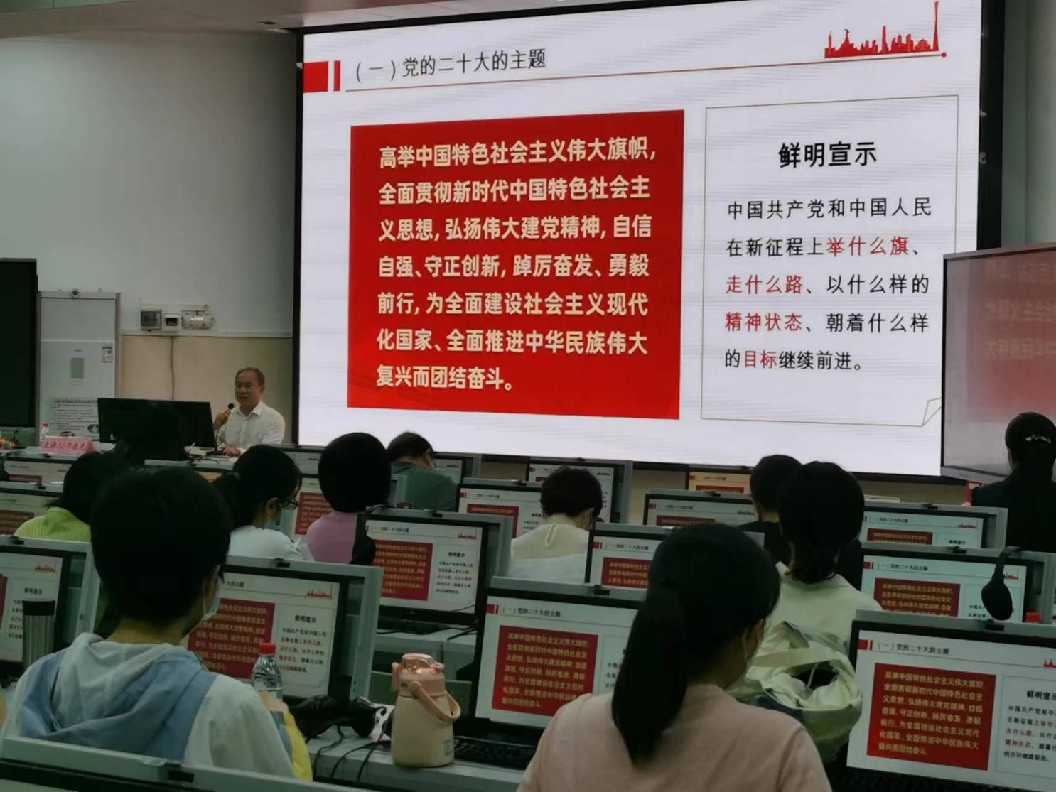 11月16日,在湖光校区兴教楼110室,公司党委常委、副董事长邓逢光为永利集团304官网全体教职工、员工党员100多人作二十大精神宣讲报告。