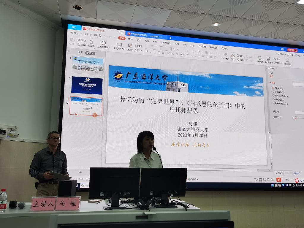 2023年4月19日至20日,来自加拿大约克大学语言、文学及语言学系马佳博士应邀为永利集团304官网师生带来两场学术讲座、并进行学术研讨。