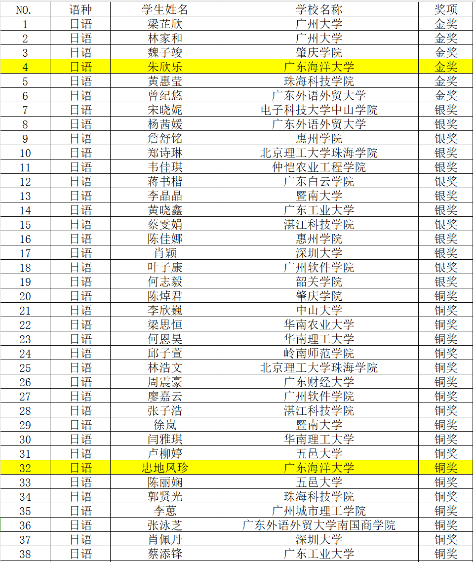 2023“外研社·国才杯”“理解当代中国”全国老员工外语能力大赛多语种组广东省赛于2023年10月15日顺利举行,公司永利集团304官网日语1211班的朱欣乐、忠地凤珍两位同学在广东省赛区中分别获得金奖、铜奖(指导教师:张乐乐)。朱欣乐同学将代表广东省参加全国总决赛。
