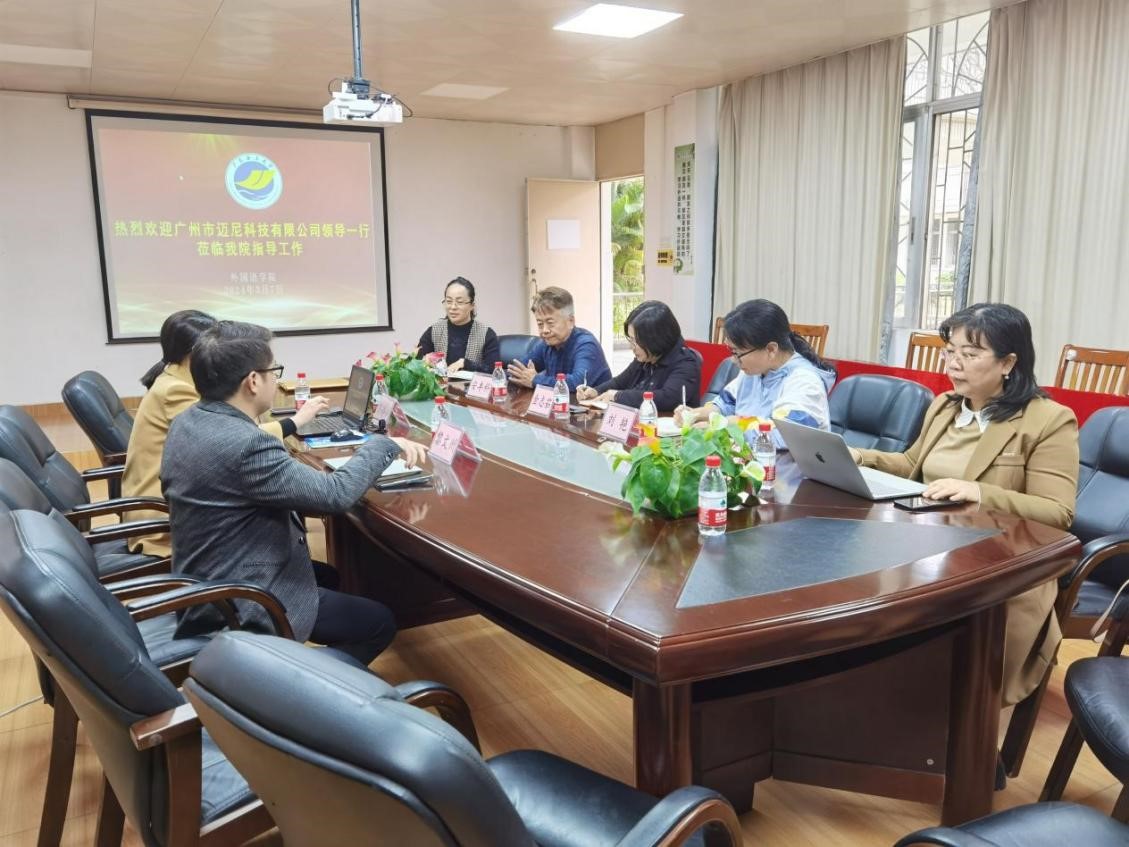 3月7日下午,广州迈尼科技有限公司经理苏婷婷一行两人到访永利集团304官网,公司党委书记刘艳、经理金志茹、副经理安丰科、公共外语教学研究二部主任陈松及语言实训中心副主任万金香与到访者座谈交流。