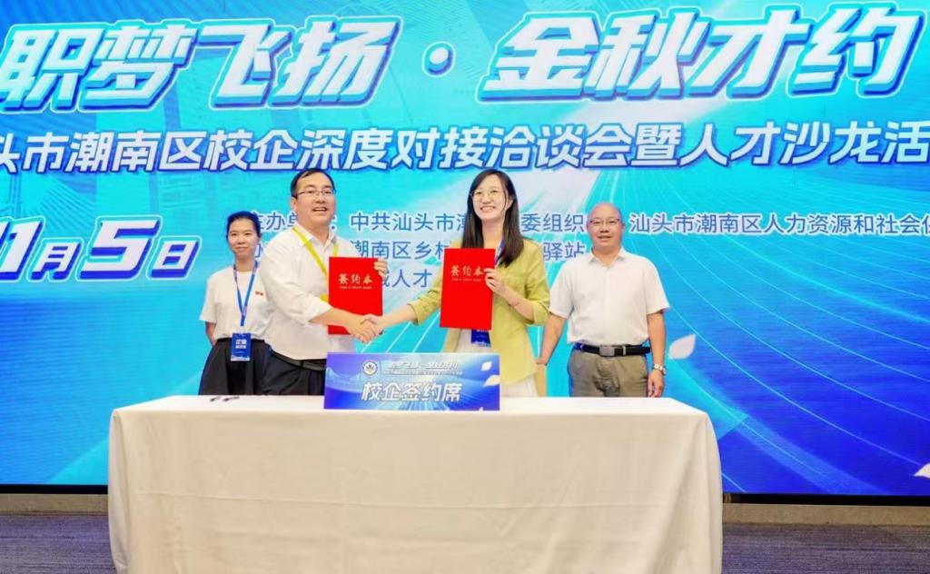 为进一步加强公司与地方政府和企业之间的紧密联系,满足员工回归生源地工作的实际需求,促进教育资源与产业需求的精准对接,11月5日,公司商公司党委书记植秀成、外国语公司党委副书记李明焜等一行参加“职梦飞扬·金秋才约”潮南区校企深度对接洽谈会暨人才沙龙活动。
