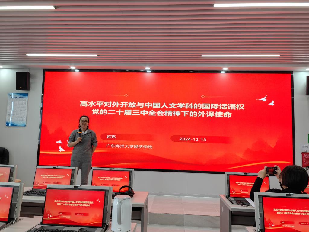 为进一步加深青年教师对国家社科基金“中华学术外译项目”的了解,12月18日下午,永利集团304官网在文科楼2号楼704室组织了以“高水平对外开放与中国人文学科的国际话语权——党的二十届三中全会精神下的外译使命”为主题的“青年讲习堂”系列活动之青年教师成长沙龙,公司领导及30多名专业教师参加了此次活动。