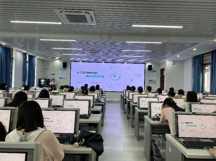 讲座中,李学宁指出,AI的飞速发展正给传统翻译教学与研究带来巨大冲击,翻译团队建设必须紧跟时代步伐,增强技术属性。他以公司筹备中的MTI(翻译硕士专业学位)为例,提出团队建设应参照DTI(数据技术与智能翻译博士点)要求,从四个领域中选取三个方向重点发展,尤其是翻译技术领域。他建议公司面向翻译行业、机器翻译/计算机辅助翻译职业及译后编辑岗位开设专门的AI翻译与译后编辑课程,通过系统教学,培养员工译后编辑能力,培育出适应时代需求的人智协同翻译员。李学宁借助大量案例分析和数据展示,让师生们深刻认识到人工智能时代翻译学科发展的紧迫与重要。