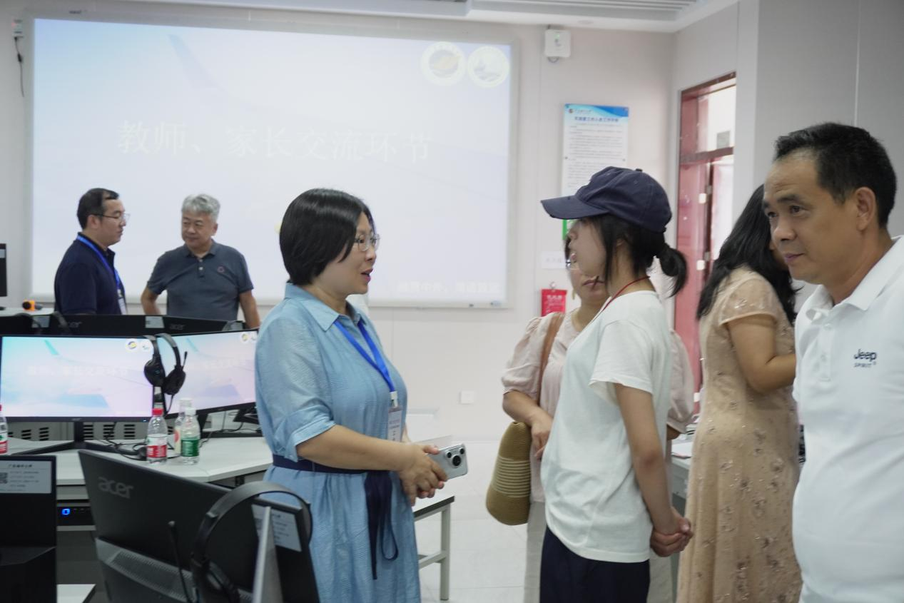 在公司学工展板前,刘书记主动为邓逢光副董事长、新生及家长介绍展板内容。从公司的团队力量、学工团队、学科特色,到“学业支持与科研平台”等员工工作重点,再到历年学子的成长成果与校园活动剪影,每一个板块用生动的案例让大家直观了解外院的育人理念与发展优势,鼓励新生“在这里找准方向,用好公司资源,在语言学习中实现成长突破”。