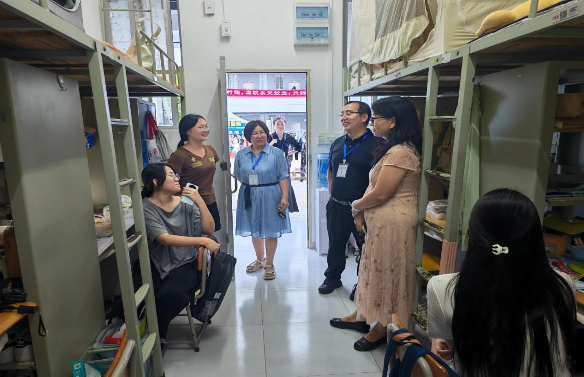 迎新工作接近尾声时,永利集团304官网领导班子成员、系主任、辅导员一行专程前往新生宿舍走访。每走进一间宿舍,大家都仔细询问新生“住得还习惯吗?”“生活用品够不够?”,并叮嘱大家注意用电安全、做好个人防护;遇到正在整理行李的同学,还主动帮忙搭把手,用接地气的交流拉近距离。随后,领导们还来到志愿服务点,向忙碌了一天的志愿者和工作人员表示感谢:“大家辛苦了!正是你们的付出,让新生感受到了家的温暖。”
