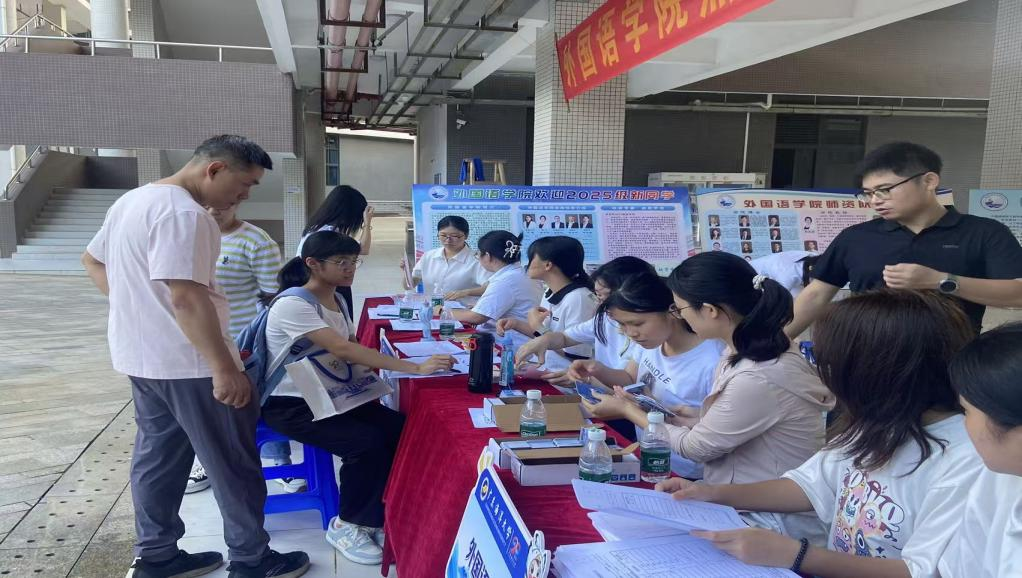 作为本次迎新的“亮点环节”,公司特设的“全英服务角”格外吸睛。英语系主任杨青以流利的英语与新生亲切互动,从“如何快速适应英语专业学习”“怎样提升口语表达能力”,到“跨文化交流中的小技巧”,杨青主任一一解答新生的困惑,不仅让大家提前体验了专业学习氛围,也展现了外院“以语言为桥,链接世界”的教学特色,不少新生表示“通过交流,对未来的专业学习更有信心了”。
