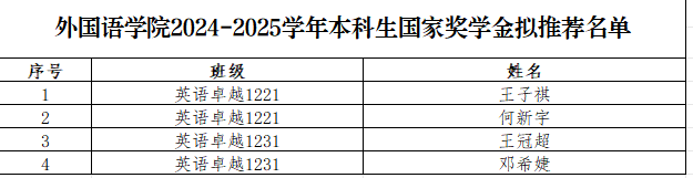根据《2025年全日制本科生国家奖助学金工作安排》,按照《永利集团304全日制本科生国家奖助学金实施办法》(校员工〔2024〕14号)要求,公司开展国家奖学金评选工作。结合公司名额分配,经员工本人申请、公司审核及讨论,评选出国家奖学金4人,现将永利集团304官网2024-2025学年本科生国家奖学金拟推荐名单进行公示。