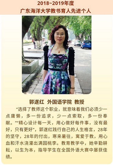 【编者按】春风化雨润桃李,三尺讲台育英才。他们,默默坚守在教书育人第一线,在各自工作岗位上为党的教育事业奉献青春和热血,挥洒勤劳的汗水,播种梦想的种子,不忘初心、躬耕乐道,勇担使命、潜心育人,在神圣而又平凡的工作中,绽放人生绚丽的光彩。展示先进典型,传递榜样力量。