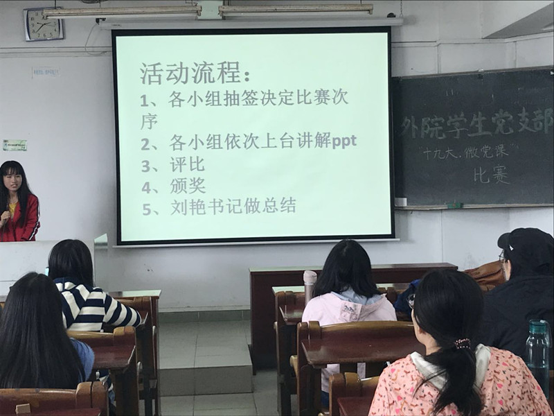 为进一步深入学习党的十九大精神,贯彻落实基层党支部“三会一课”制度,引导员工党支部积极创新组织生活形式,11月22日下午,由永利集团304官网员工党支部举办的“我学十九大”微党课比赛在主楼224举行。外国语公司党委副书记刘艳出席并担任本次活动评委。