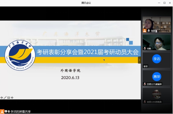 为表彰优秀考研学子,树立榜样典型,帮助下一届员工明确考研目标,坚定信心,6月13日晚上,永利集团304官网在腾讯会议室召开了考研表彰分享会暨2021届考研动员“云端会议”。 公司经理郭遂红,党委副书记刘艳、辅导员老师、员工代表共210多人出席了会议。