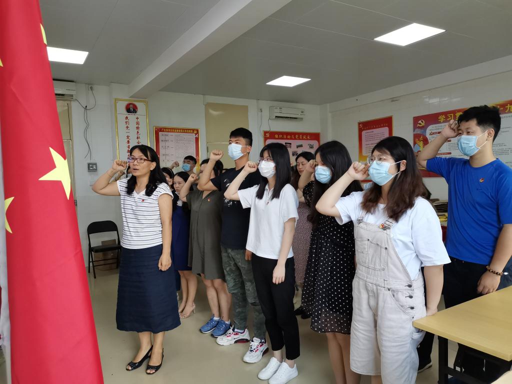 会上,刘艳带领与会党员佩戴党员徽章,庄严地举起右手,面向党旗,共同重温入党誓词,表达了为共产主义事业奋斗终生的理想和信念,庆祝中国共产党成立99周年。
