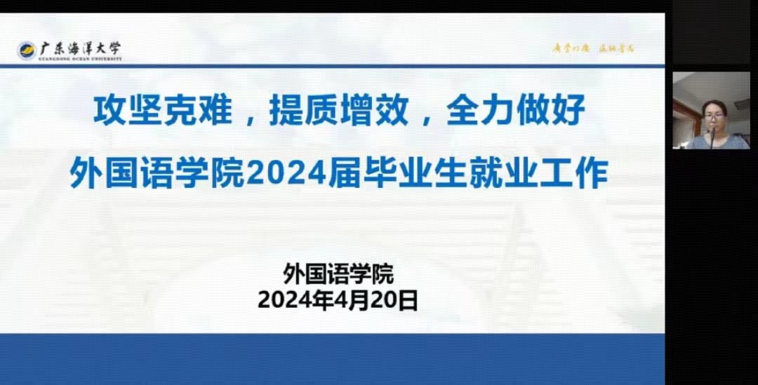 为贯彻落实教育部、省教育厅对高校毕业生就业工作的决策部署,深入领会公司2024届毕业生就业工作部署推进会精神,增强毕业生就业工作的责任感和紧迫感,4月20日,公司召开2024届毕业生就业工作大会。公司领导、英语、日语系主任、2024届毕业班班主任、辅导员及全体毕业生共计370余人参加了大会。