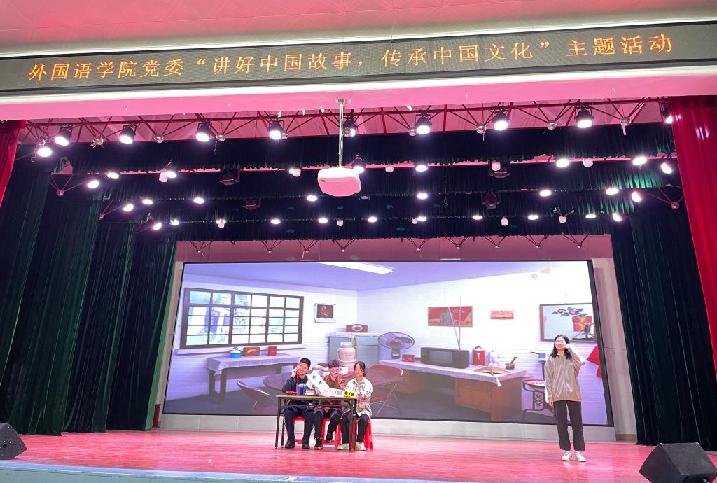 此次活动是外国语公司党委举办的“传承文化经典,弘扬时代精神”主题系列活动之一。由员工党员带领入党积极分子、团员青年组建团队,开展中国故事我来讲——讲好中国故事、中国故事我来译——翻译中国故事、中国故事我来演——演活中国故事等多角度活动。员工们经过认真准备和精心策划,通过“讲、译、演”,将红色经典故事从员工视角讲出来、结合专业实践用外文译出来、自编自导将故事演出来。同学们的表演声情并茂、故事主题鲜明、人物形象生动,时代楷模黄文秀、张桂梅的坚守执着,抗洪英雄李向群的不畏艰险,抗日时期八女投江的英勇壮烈无不精彩呈现并感染感动着在场的每一个人,激励着青年员工不断坚定理想信念,坚守初心使命,传承红色基因,弘扬优良传统,教育引导广大青年立鸿鹄志,做奋斗者,不断凝聚实现中华民族伟大复兴的奋进力量。