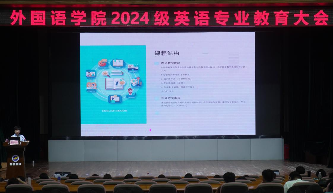 在英语专业教育大会上,英语系主任杨青老师为新生详细阐述了英语专业的丰富内涵及未来走向。他提出,作为新时期的外语人才,我们对自身专业应充满信心与认同,同时也为我们列举出英语系优质的教学条件、强大的教师阵容以及卓越的专业建设成绩。在日语专业教育大会上,日语系主任郑颖老师详细说明了本专业的学习任务和发展趋势,并鼓励大家踊跃参与各项专业竞赛和考证活动,以此提升个人专业水平。本次专业教育大会助力同学们深入了解专业知识,为未来的学术研究打下坚实基础。
