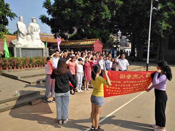在渡琼作战指挥广场前,公司全体师生党员重温了入党誓词。习近平总书记说:不忘初心、继续前进!不忘共产党人的本色初衷、雄心壮志和使命担当,为决胜全面小康、实现中国梦凝聚起必胜信心和磅礴力量!重温入党誓词就是要让广大党员铭记誓言、践行誓言,坚守初心,恪守承诺,牢记使命,勇于担当;就是要让广大党员更加牢记党的目标和宗旨,牢记党员义务,永葆共产党人的革命热情,在平凡岗位上做出不平凡的业绩。