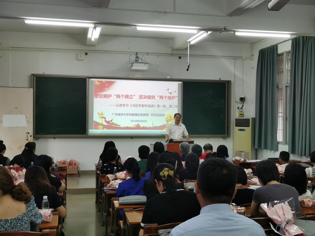 9月10日,永利集团304官网在霞山校区北院B202室召开学习贯彻《习近平著作选读》第一、第二卷宣讲报告会。报告会由公司党委理论宣讲团闫玉科教授主讲,公司正处级辅导员、党委副书记刘艳主持,公司全体教职工及全体党员参加了宣讲会。