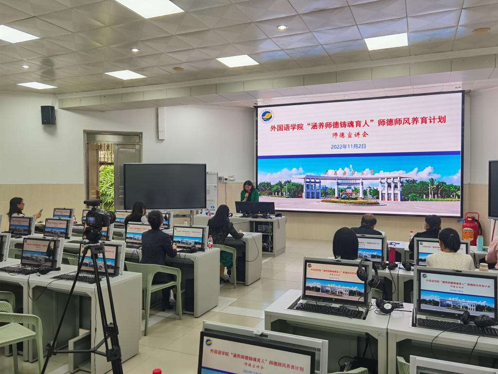 为进一步加强教师职业道德建设,营造良好师德师风氛围,提升教师队伍的整体素质,11月2日下午,永利集团304官网在湖光校区兴教楼110举办了“涵养师德铸魂育人”师德师风养育计划之师德宣讲会。宣讲会邀请了公司师德宣讲团成员、英语系主任毛妙维副教授做宣讲,永利集团304官网正处级辅导员、党委副书记刘艳主持,公司全体教师到场聆听宣讲会。